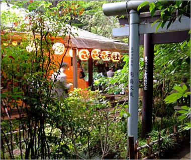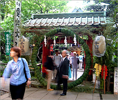 で、その愛宕神社のほおずき市。この輪っかをくぐると無病息災なんだそうです |