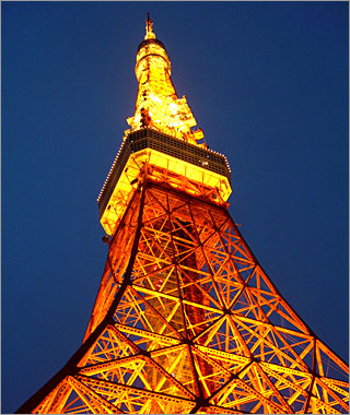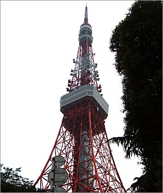 夕闇迫る東京タワー。あかあかとまるでたいまつのようだ |