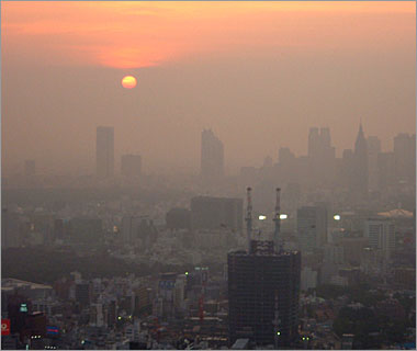 新宿方面に沈む夕日。なんか経済小説の表紙みたいだなぁ |
