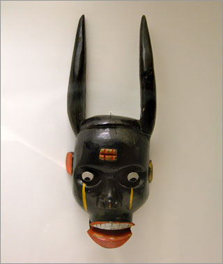 世界の民族コーナーにあったお面。これはどこ地方のだろう…アフリカっぽいけど?表示よくみなかった。。(汗) |