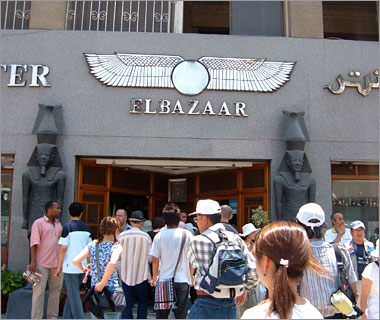 カイロ市内をバスで移動。この頃、テロとか結構あってかなり物騒だったようです(そのせいで滞在日数がわずか一日に…号泣。ルクソールとか見れなかったよぉ!)各国からの観光客を乗せた大型のバスを二十台くらい連ねて、その前後両サイドを軍隊とみまがう武装の「観光警察」が護衛してくれて移動。一般の車が割り込もうとするとたちまち排除されてましたねぇ |