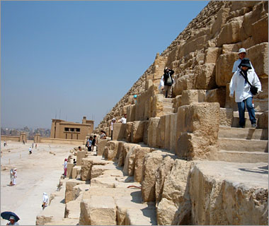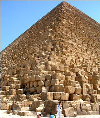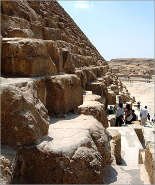 ギザの大ピラミッドに来ました。サッカラの後なんで少々落ち着いてますが、やっぱりうれしいです |
