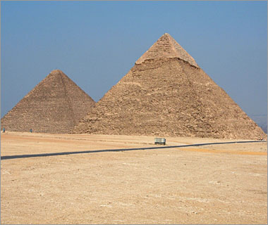 ほらね。手前の人物と比べるとメンカウラーのピラミッドのしょんぼりな小ささがわかっちゃうでしょ? |