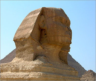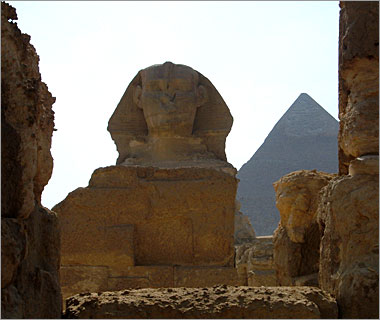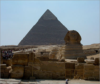お次はスフィンクス見学に。ピラミッドを背負ったおなじみの構図♪ |