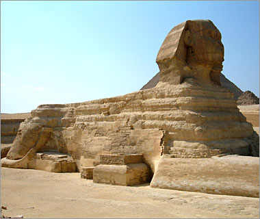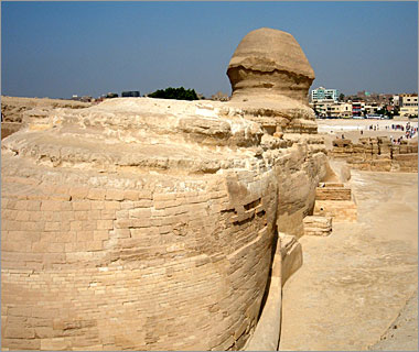 スフィンクス脇にある建物は「河岸神殿」と呼ばれている。してみると、かつてはここまでナイルの水が来てたってことか?(写真中央の人関係ないです) |