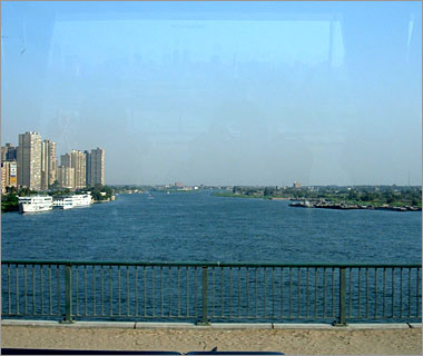 で、帰り道に通ったこれが、かの有名な母なるナイル川です♪「…荒川くらいじゃね?」とか思った不逞の輩は前に出なさい!って自分です…(笑)たぶんだけど、今はまだ水量の少ない時期なのと、水の豊富な日本とアフリカ大陸にあるエジプトの川を単純に比較は出来ないかと…。それにしてももっとでかいかと思った〜 |