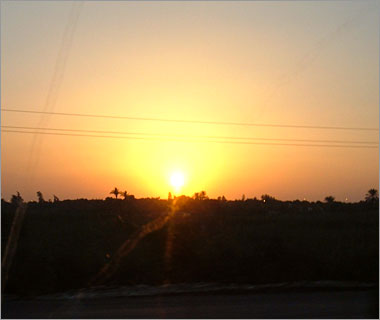 エジプトとお別れする帰りのバスから眺めた夕日…。何ともいえない気分になりました。まだまだ見てないものがありすぎる。絶対また来るぞ〜!!誰かお金出してくれ!(失笑) |