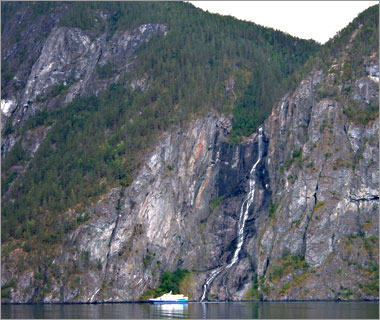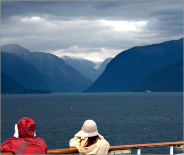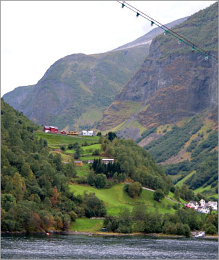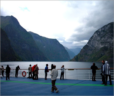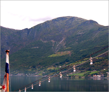 翌日はまた船に乗って、最も長い「ソグネ・フィヨルド」を見に行く。写真は出港したところ。 |
