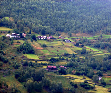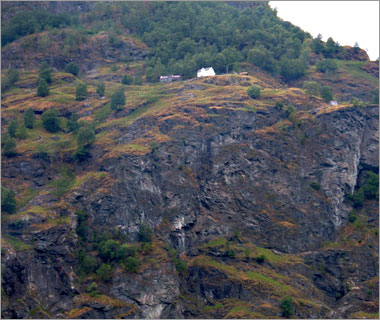 ノルウェーには国土の3%くらいしか人の住める土地がないらしい。だからこんな感じでかなりな傾斜地にもへばりつくように住んでる。 |