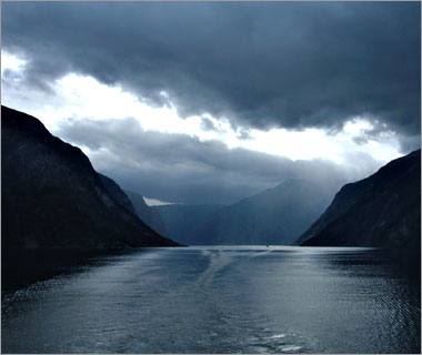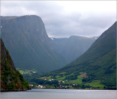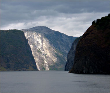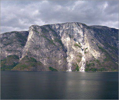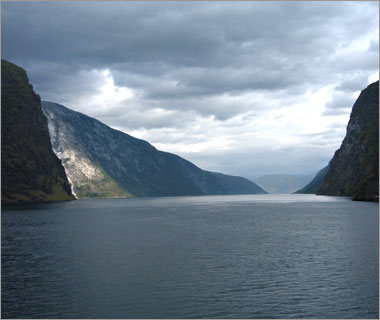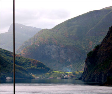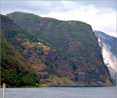 ここが「ソグネ・フィヨルド」の最深部。なんか夢の中にある国みたいな、不思議な眺めだ…。 |