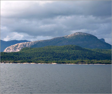 ここらへんの地形は、フィヨルドよりもさらに一層、分厚い巨大な氷河に削り尽くされて、まるでペロンとなめたような平らな形状になっている。 |
