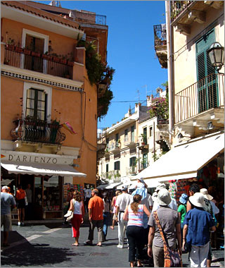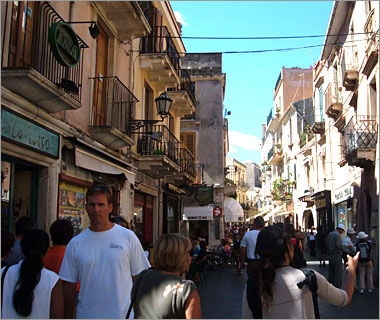 イタリアはシチリア島の高級リゾート地、タオルミーナという街へやって来た。「グランブルー」という映画の舞台だったそうでかなり有名なところらしい… |