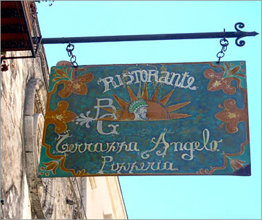 色んなお店に古そうな看板がかかってるんですが、どれも素敵なデザインで…これも配色が大人っぽくていいよね〜♪ |