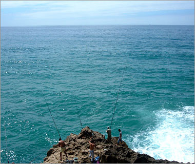 そうそう。言い忘れてたけど、ここに見える海って、もう地中海ではなくて、大西洋、つまり完全な外洋なんですよ〜。お隣のスペインでもマグロなんか採れるって話だったしな(産卵のために回遊してくるのだそう) |