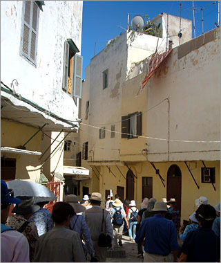タンジェの街の中にある「カスバ」と呼ばれる迷路のような旧市街へ。ここは住民でもたまに迷子になるほどの迷宮っぷり(?)らしいので、「絶対に前の方から離れないで下さーい!」とか引率の人が言ってたな(笑) |