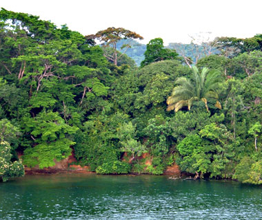 「ガトゥン閘(こう)門」を抜けた先は、ガトゥン湖という湖で、さらにその先にも運河はいくつか段階を経て、太平洋側までえんえんと続いているのだ。結構抜けるまで何時間も掛かる。 |