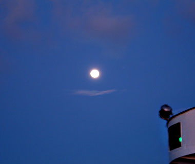 背後には満月に近い月。 |