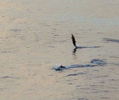 さっきのは拡大したやつ。引くとこんな感じ。話には聞いたことあったけど、イルカは本当に好奇心旺盛な生き物だな〜実に楽しそうに跳ねてた。きっと、こっち見てたんだな!☆ |