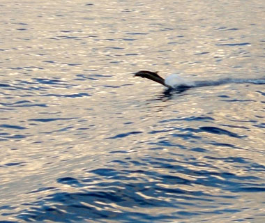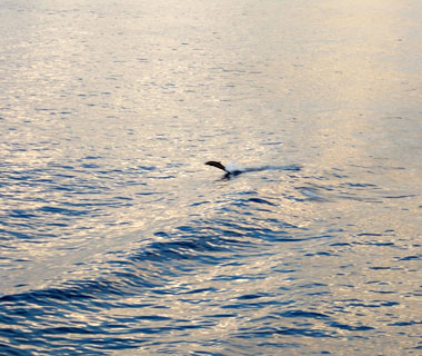 ある時、船が見渡す限り数百頭(!)のイルカの大群に囲まれて船中が大騒ぎに。この写真ではまるでわからんけど、あっちこっちでぴょんぴょんぴょんぴょん凄いことに!(奮) |